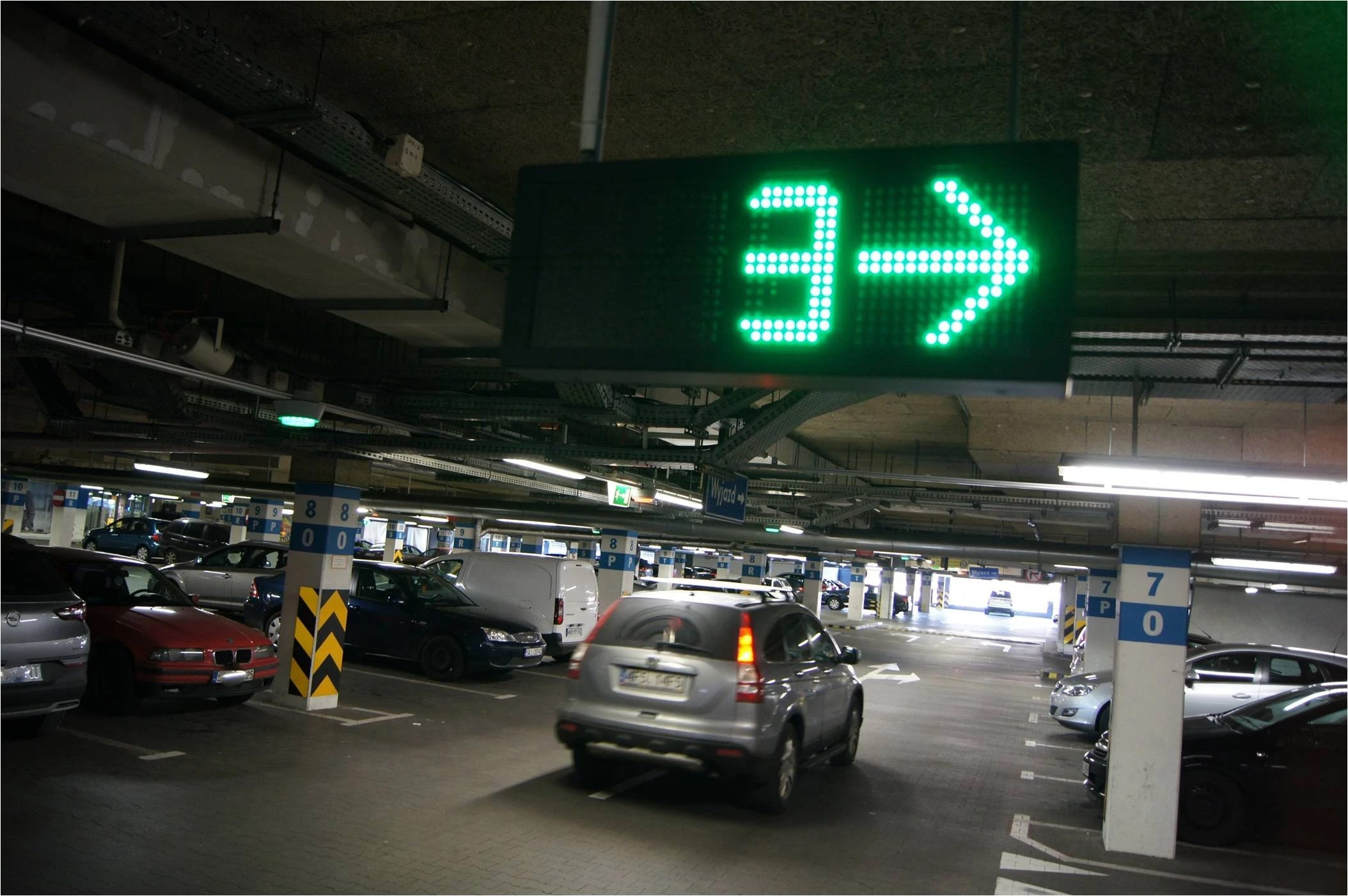 - Na każdym miejscu parkingowym widoczne są wskaźniki LED, które informują, czy miejsce jest wolne, zajęte, czy przeznaczone dla osób z niepełnosprawnościami.